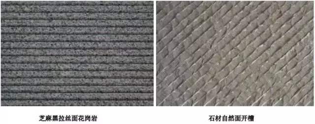 石材拉絲面也叫機刨面,在石材表面上開一定的深度和寬度的溝槽,是石材的一種特殊的加工工藝,能夠起到防滑跟紋理特別的質感。